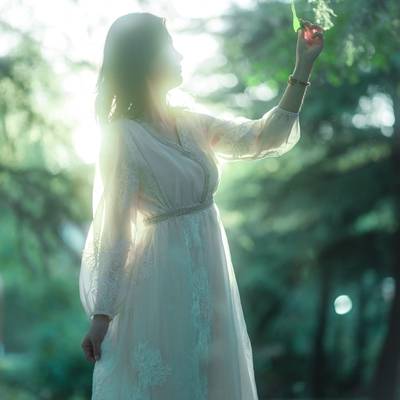 森系女,下午在森林公园拍摄